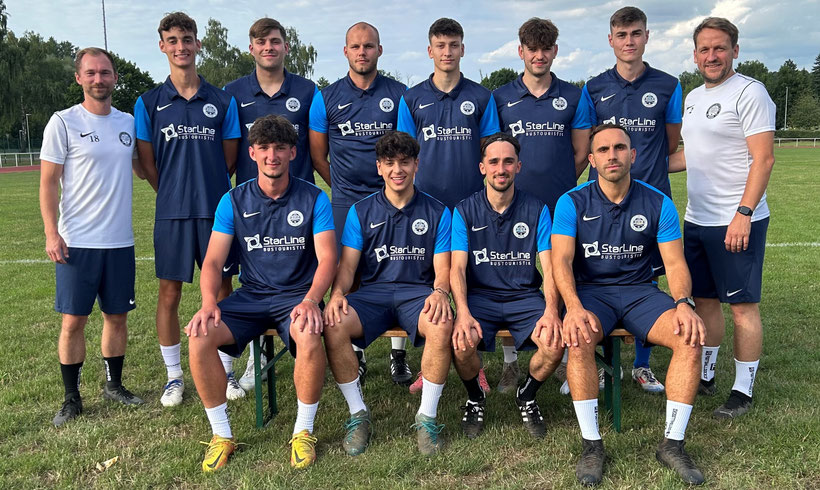 Hintere Reihe: Marcel Siegel (Co-Trainer), Julius Burger, Tim Bausch, Björn Gniot, Moritz Turnwald, Jannik Lohrey, Edim Jusufi, Jannik Jung (Trainer)