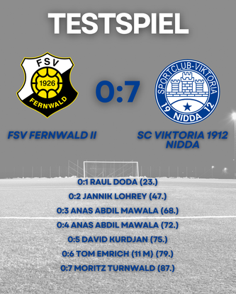 Im ersten Testspiel der Vorbereitung unter dem neuen Trainerduo Jannik Jung und Marcel Siegel konnte unser Team direkt den ersten Sieg einfahren. Gegen die Reserve des Hessenliga-Meisters FSV Fernwald setzte sich unser Team mit 7:0 durch. In Halbzeit eins hatte sich solch ein Ergebnis noch nicht abgezeichnet. Lediglich einer der sieben Treffer (Raul Doda nach Ecke von Arsen Dashyan) fiel vor dem Pausenpfiff.