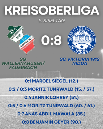 Unsere Viktoria ließ im Derby der Kreisoberliga Büdingen keinerlei Zweifel an der eigenen Favoritenrolle aufkommen und feierte einen auch in der Höhe verdienten 8:0-Kantersieg bei der SG Wallernhausen/Fauerbach. Nach einem kämpferischen Beginn der Gastgeber war die Partie bereits zur Pause entschieden.