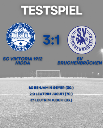 Im dritten Testspiel der Saisonvorbereitung empfing unser Team den Friedberger Kreisoberligisten SV Bruchenbrücken auf der heimischen Gänsweid. Nach einer guten halben Stunde traf Kapitän Benjamin Geyer zum 1:0 für die Jung-Elf. Mit diesem Ergebnis ging es auch in den Pause. Nach mehreren Wechseln zur Pause und im Laufe der zweiten Hälfte veränderte sich das Gesicht der Mannschaft deutlich, dennoch wusste das Team spielerisch zu überzeugen und traf in der 70. Minute durch Leutrim Jusufi zum 2:0. In der 80. Minuten gelang Tim Rubenschuh der Anschlusstreffer für die Gäste, doch nur drei Minuten später stellte Jusufi den alten Abstand wieder her und sorgte so für den 3:1-Endstand.