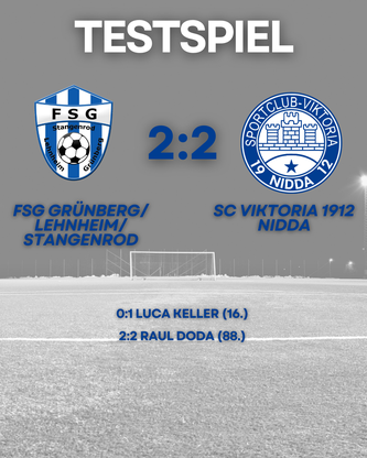 Nur zwei Tage nach dem Gewinn der Niddaer Stadtmeisterschaft stand für unser Team das nächste Testspiel auf dem Programm. Gegen den Gruppenligisten aus dem Kreis Gießen/Marburg erreichte unser Team am Ende ein 2:2. Nach 15 Minuten erzielte Neuzugang Luca Keller die Führung für unser Team. Leider muss er nur wenige Minuten später angeschlagen vom Feld. Kurz darauf befand sich unser Team nach einer roten Karte in Überzahl. Dennoch gelang den Gastgebern in der 30. Minute durch Fabian Erb der Ausgleich.